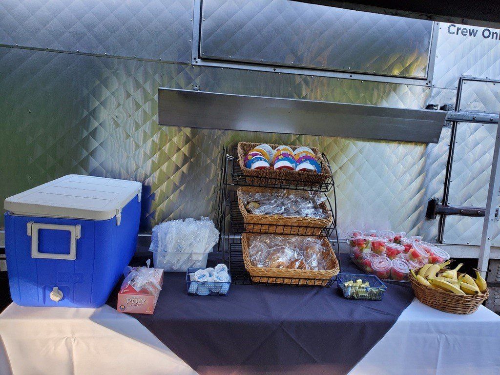 A table will be set up with coffee, tea, juices, cold cereals, fruit cup, yogurt, (individually wrapped).