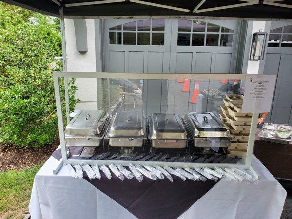 BUFFET SERVED BY OUR STAFF WEARING MASKS, FACE SHIELDS, GLOVES BEHIND SNEEZE GUARD